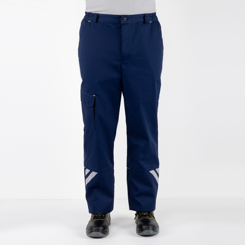 Брюки МILL-Антарес с притачным поясом с эластичной лентой по боковым швам, застегивающимся на пуговицу, со шлевками, с застежкой гульфика на молнию, с различными функциональными карманами, с элементами из СВ канта и СОП, обеспечивающие безопасность работы в условиях пониженной видимости.