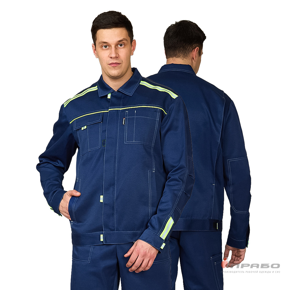 Куртка, укороченная прямого силуэта, пояс регулируемый при помощи пат, центральная бортовая застежка на молнию, закрытая планкой. Полочки с кокетками, по нижнему краю которых настрочены светоотражающие канты, вдоль плечевых швов которых настрочены репсовые ленты, имеющие СОП. Рукава втачные двухшовные с манжетами и налокотниками, на шлицах настрочены СОП. Воротник отложной. Предусмотрена возможность нанесения логотипа большого размера на спинке.