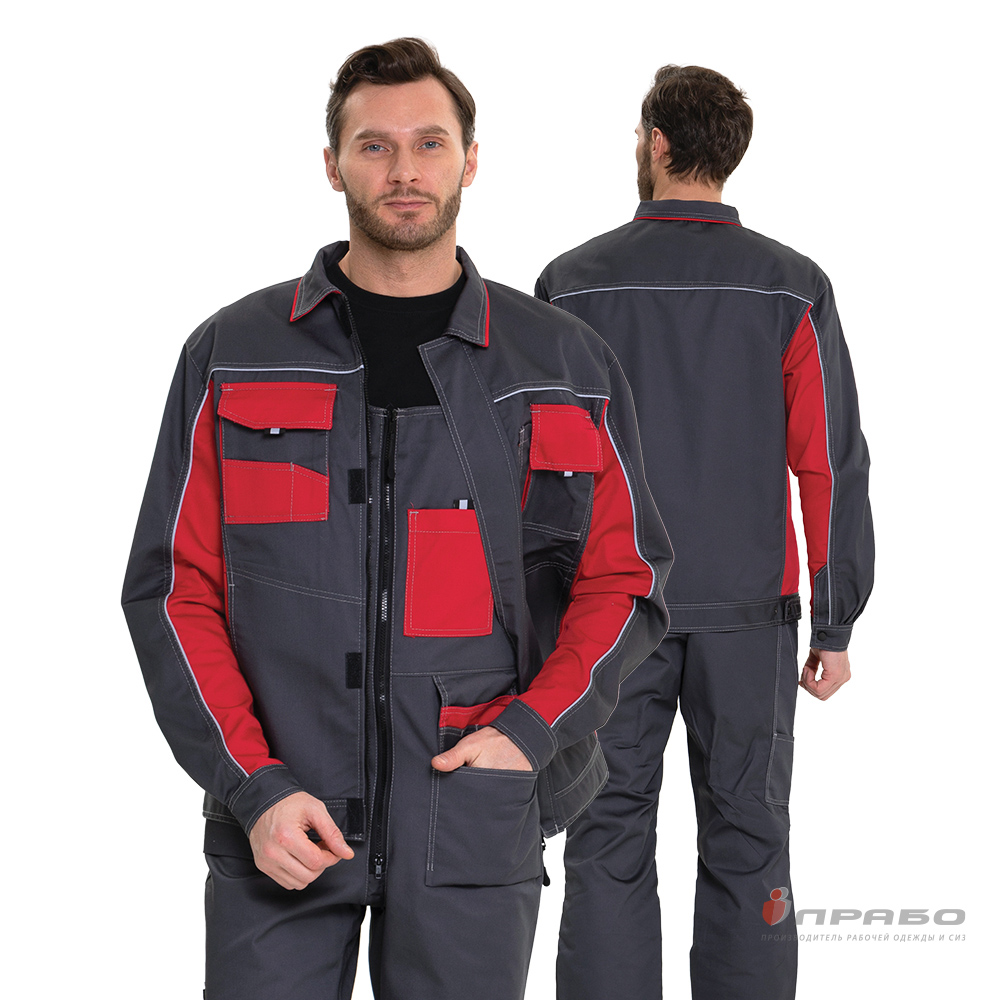 Костюм ОПЗ летний БРЕНД 2 2020 (полукомбинезон) мужской цв. темно-серый с красным