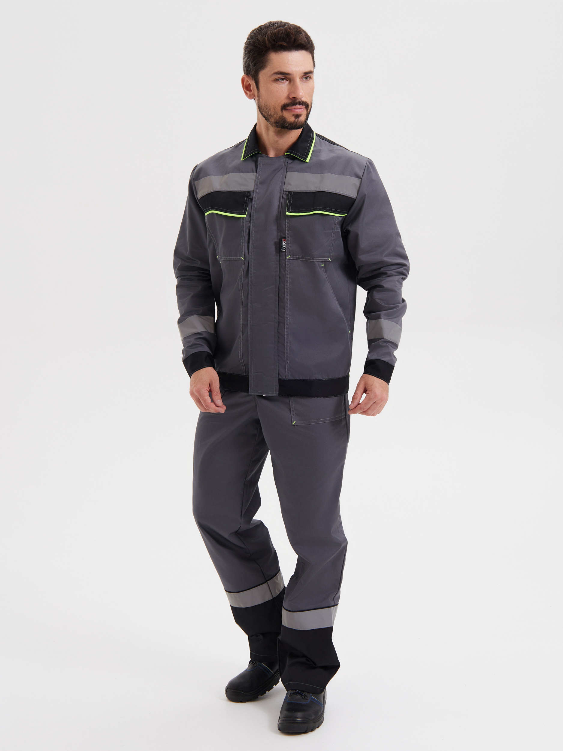Костюм ОПЗ летний СИСТЕМА (брюки) мужской цв. т-серый с черным и лимонной отделкой