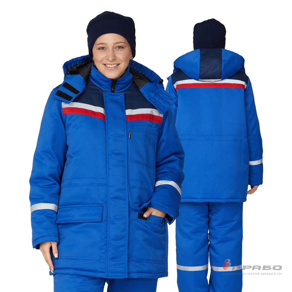Костюм ОПЗ зимний СТРОЙКА женский цв. васильковый с синей и красной кокеткой