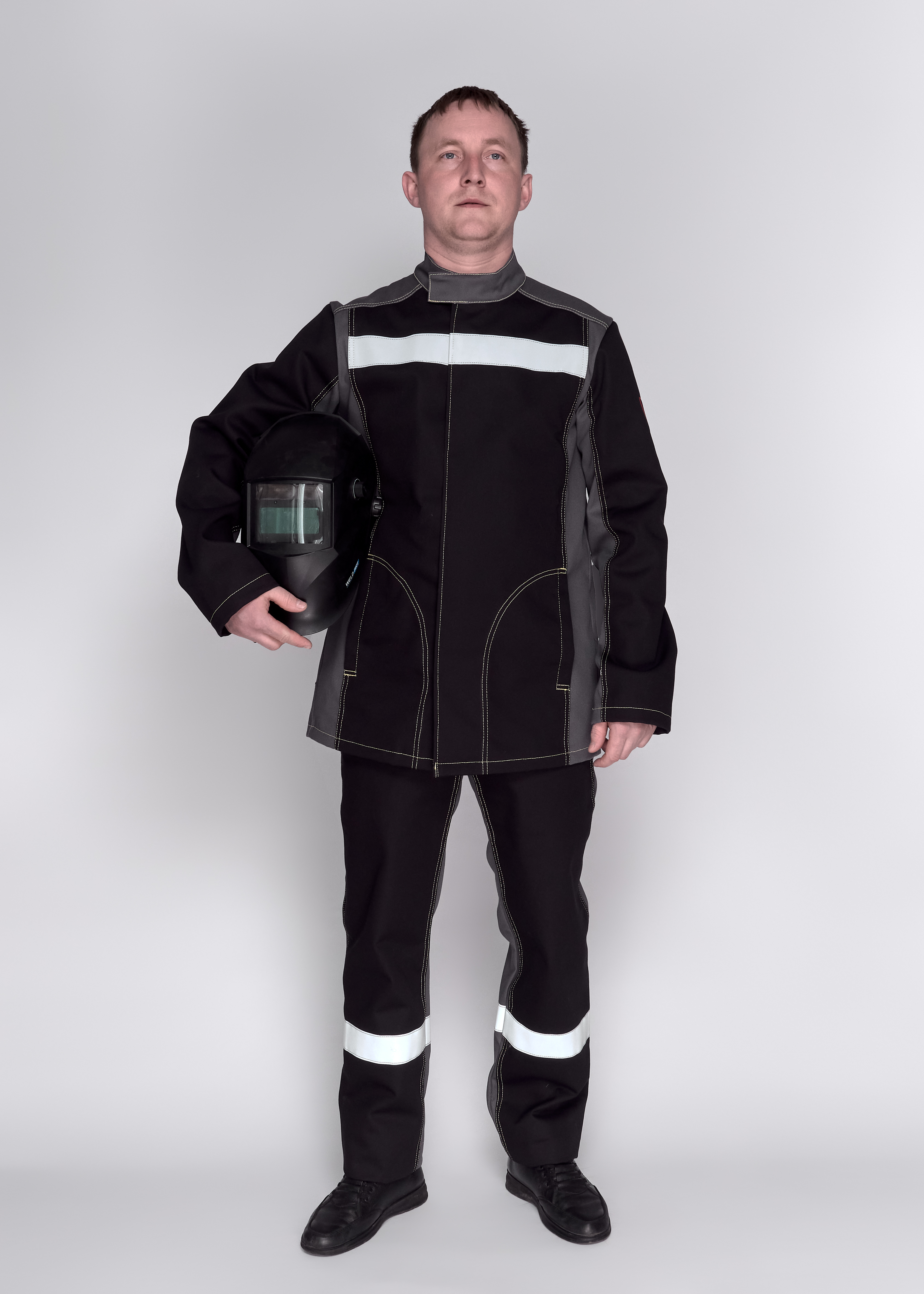 Костюм мужской для защиты от искр и брызг расплавленного металла 5679Л состоит из куртки и брюк.