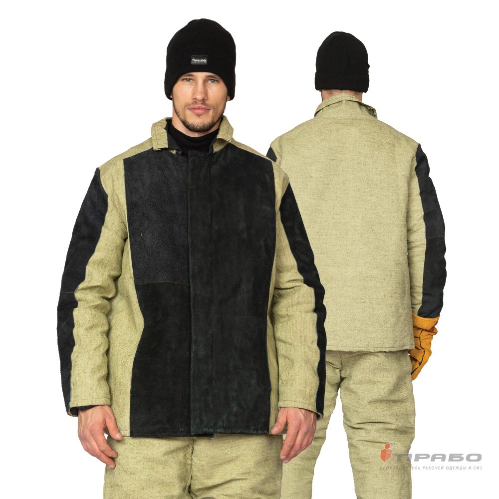 Костюм для сварщиков зимний СВАРЩИК (2,3 м²) 2 кл. защиты тк. брезент/спилок цв. черный