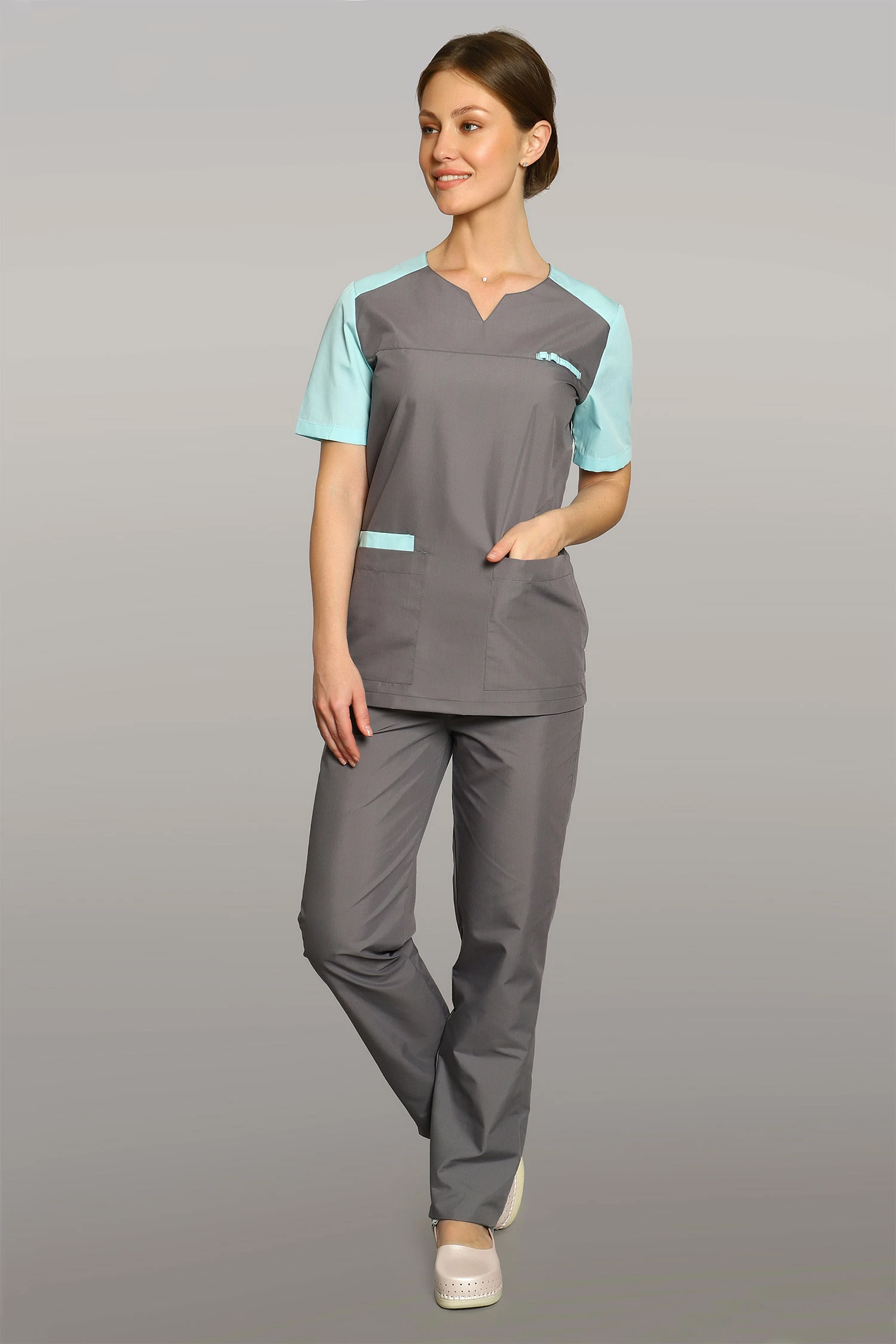 Костюм медицинский хирургический 4-60-01-1 женский короткий рукав цв. серый с бирюзовым