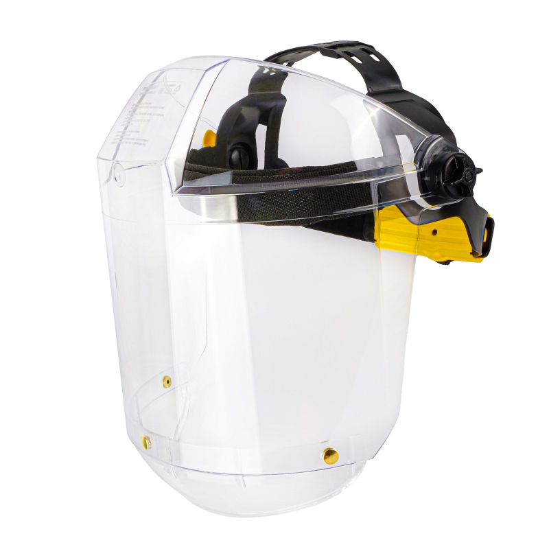 Увеличенный экран из твердого оптически прозрачного материала ударопрочный и термостойкий поликарбонат – защита от высокоскоростных летящих частиц с высокоэнергетическим ударом, имеет скошенную книзу форму для увеличения эргономики изделия, исключает неудобства при повороте и наклоне головы;
