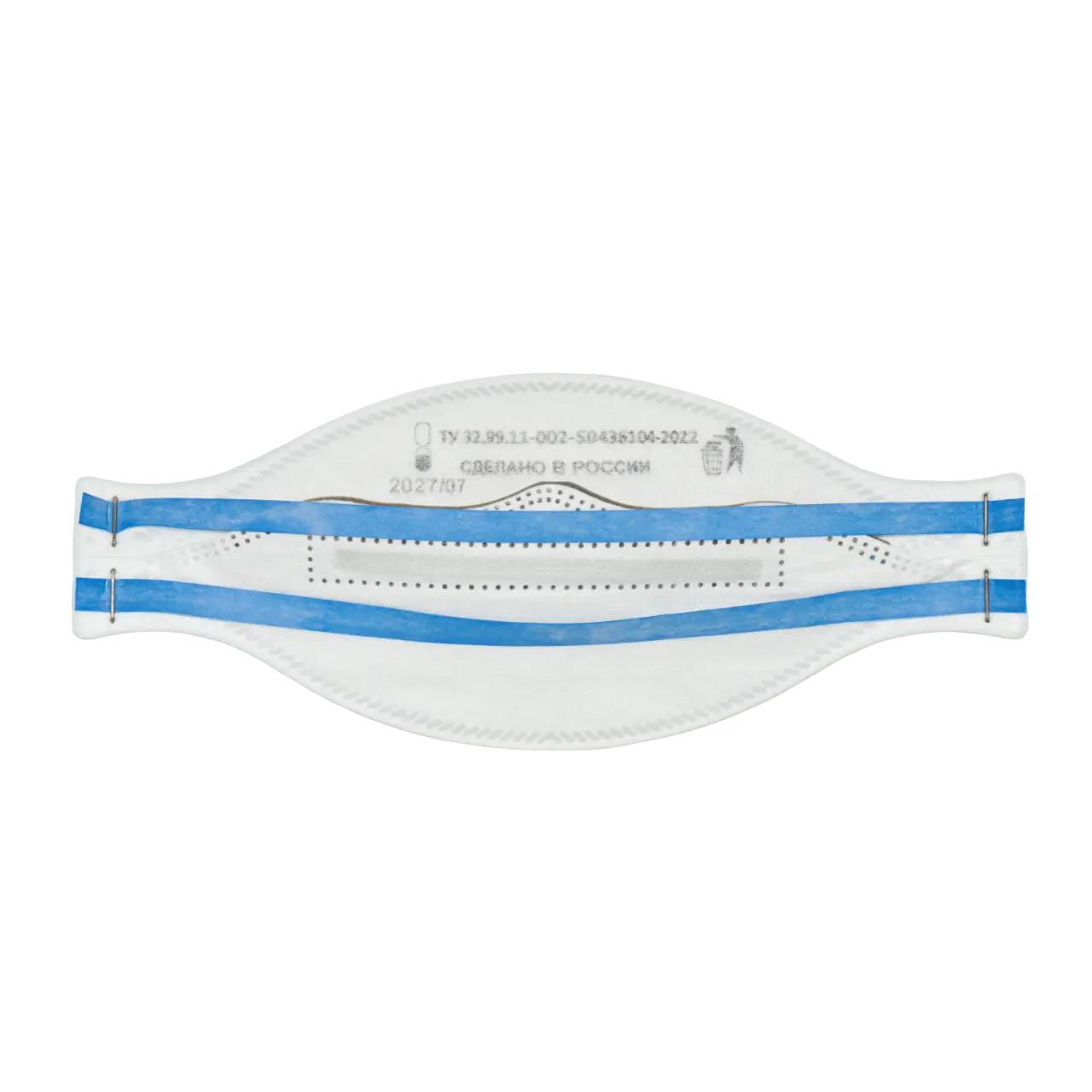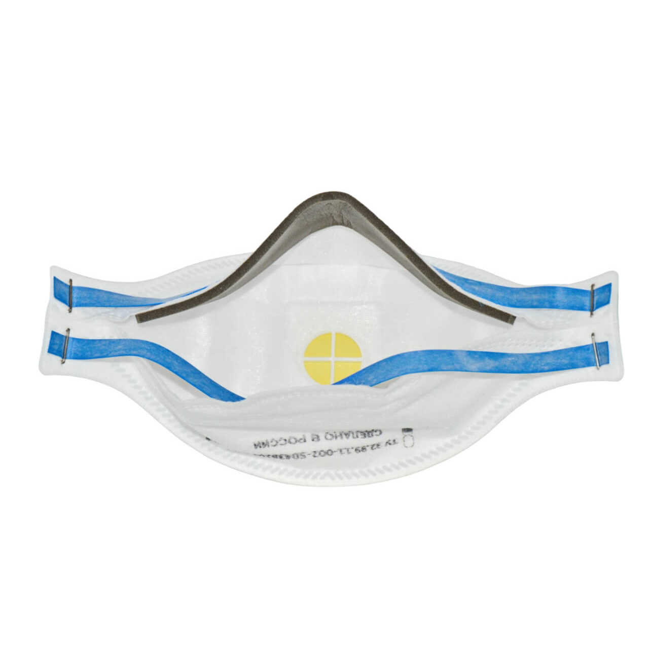 - Респиратор-полумаска имеет фигурную вырубку верхней панели для лучшей совместимости с очками и снижения риска запотевания линз.