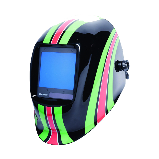 Большой диапазон настроек, светофильтр увеличенного размера дают возможность сварщику проводить разные виды сварочных работ. Четыре датчика-индикатора сварочной дуги: светофильтр затемняется вне зависимости от положения, в котором проводит работу сварщик. Кнопка TEST позволяет провести тестирование настроек щитка.