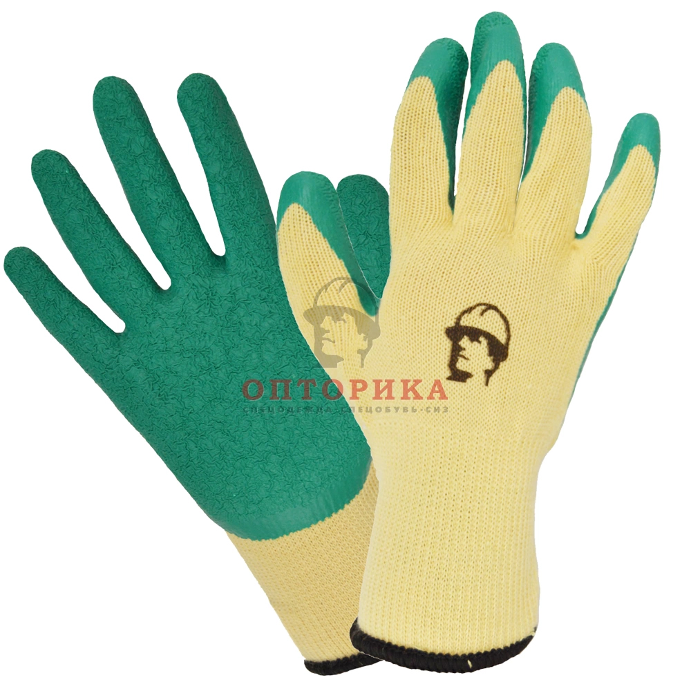 Перчатки х/б с рельефным латексным покрытием РОСМАРКА (Р6203) цв. желтый с зеленым