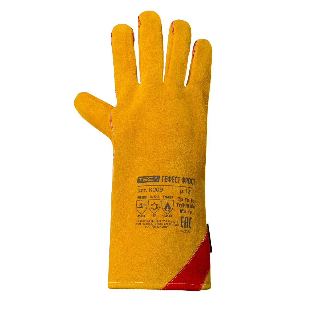 Купить Краги утепленные спилковые TESA ГЕФЕСТ ФРОСТ (К009) искусственный мех цв. желтый с красным - Профи+