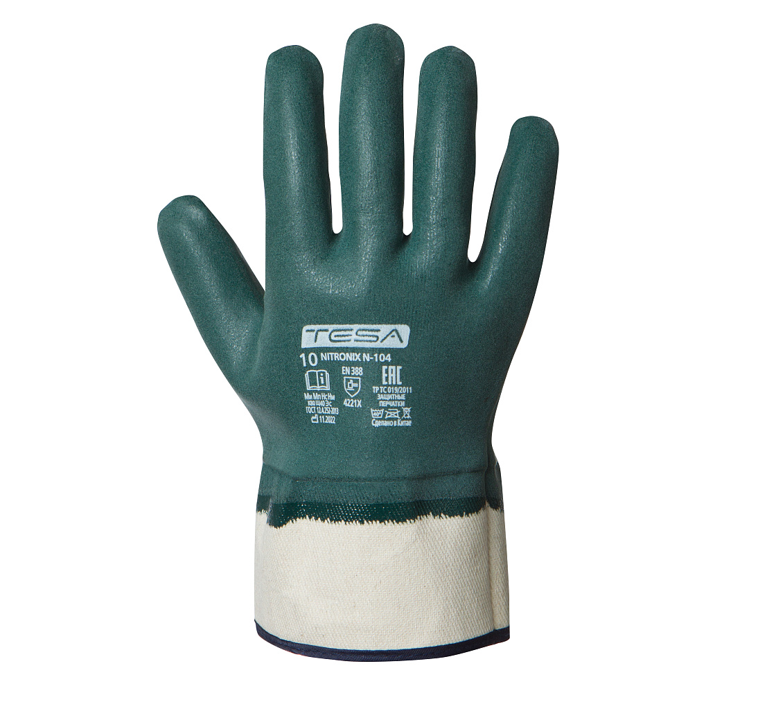 Перчатки NITRONIX N-104 для защиты от нефтепродуктов (нефть, масла, бензин и т.д) в условиях тяжелой механической нагрузки.