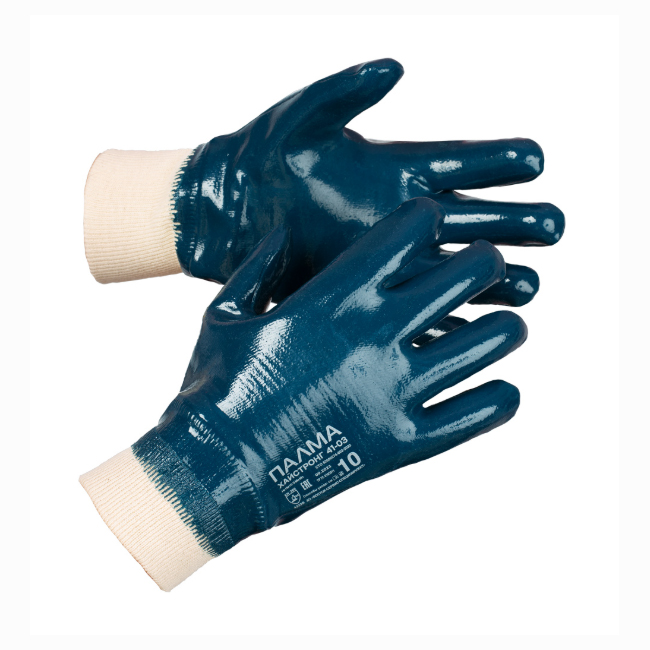 Перчатки нитриловые ПАЛМА ХАЙСТРОНГ 41-03 с полным покрытием манжета цв. синий
