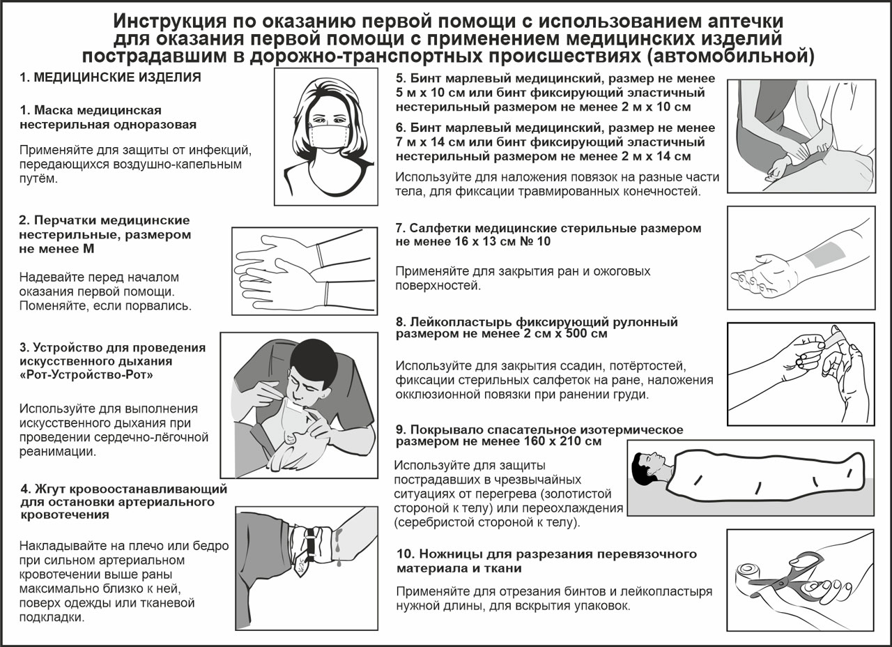 Аптечка изготовлена в соответствии с приказом Министерства здравоохранения Российской Федерации от 24.05.2024 г. №260н